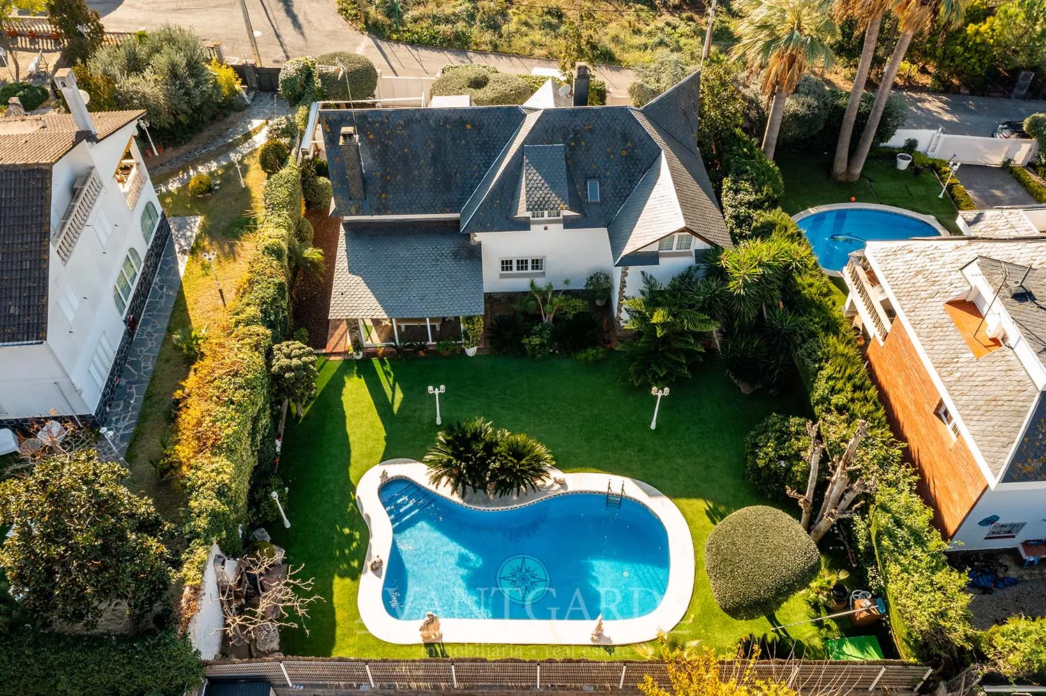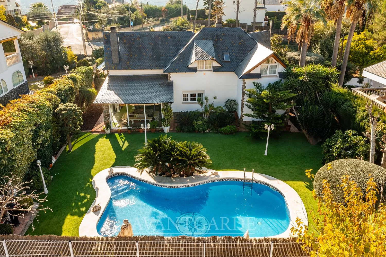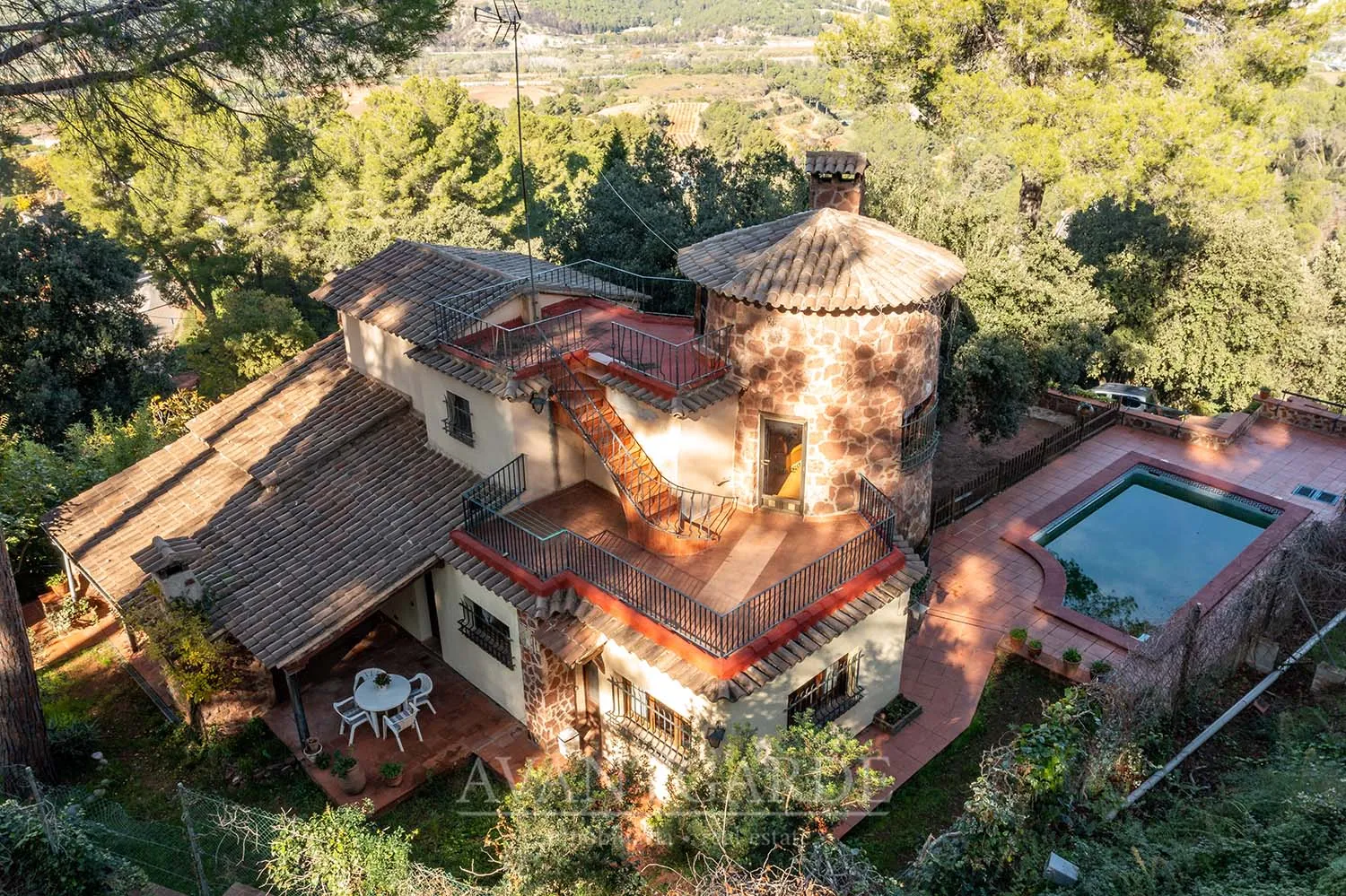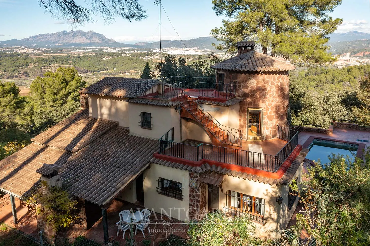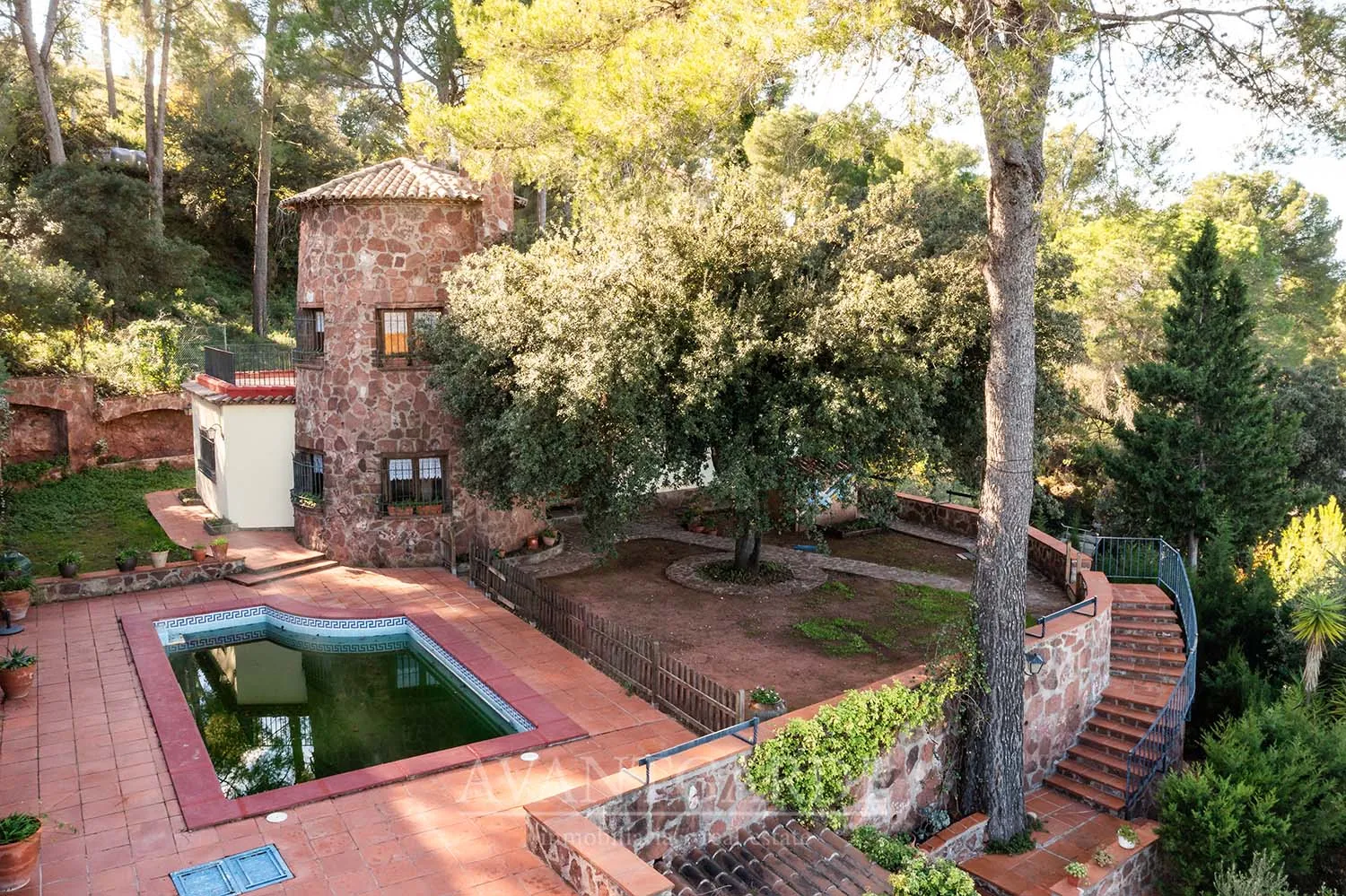 Charming property 40 minutes from Barcelona, a special refuge where the everyday is transformed into magic and where the ordinary becomes extraordinary. Its unique architecture, almost like a miniature castle, is integrated with a fairy-tale garden and spaces designed to enjoy the surroundings and the views. The house is distributed over two floors. The first has a day area, three large bedrooms and a full bathroom. The second has a double bedroom with access to a terrace with wonderful views, a full bathroom and a study ideal for work, rest or leisure. It also has a large terrace with barbecue on the main floor, swimming pool, storage room, cellar, garage for two cars and storage. Retouched to your taste, this property will become the home that marks your family life, the space that will create your best memories and where you will find the happiness you are looking for. *Al precio de venta hay que añadir los impuestos correspondientes y gastos notariales de la compraventa. La superficie informada del inmueble es la obtenida del catastro. La propiedad se vende sin muebles.